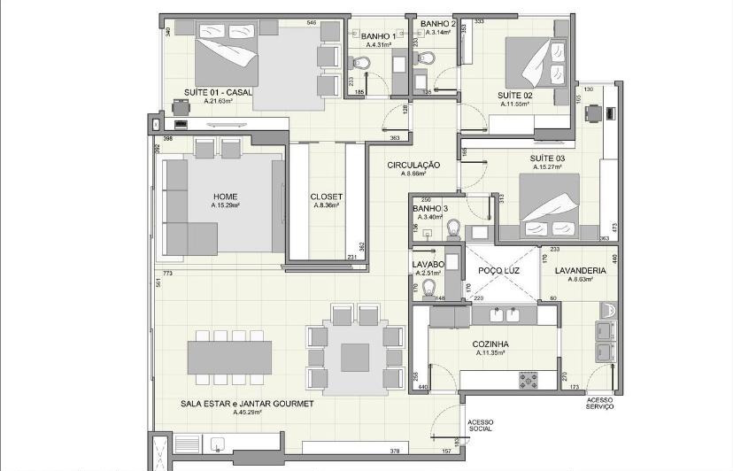 - 2 Áreas de lazer: piscina, academia, brinquedoteca, gerador