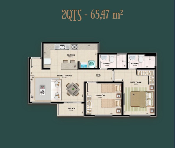 - Metragem: 65,47 m2 e 81,34 m2